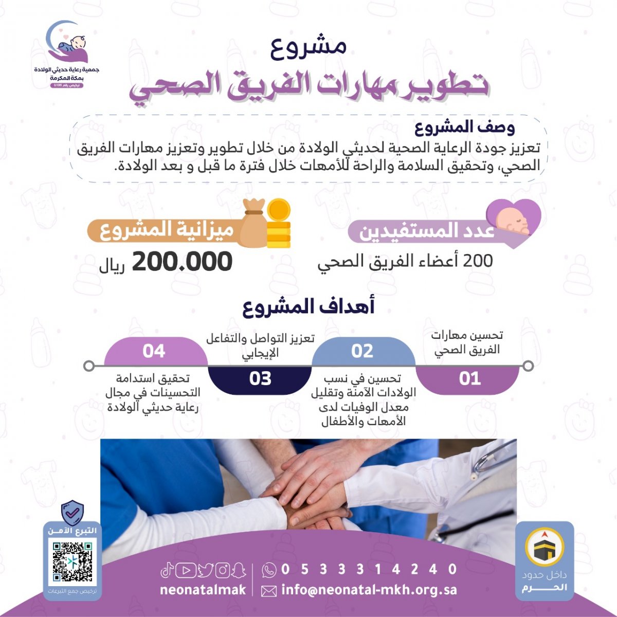 تطوير مهارات الأطباء والتمريض وبقية مزودي الخدمة الصحية وتعزيز قدراتهم في خدمة حديثي الولادة